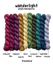 it's time to retire the spring collection to make room for wanderlight. all sale skeins are $14.00!
