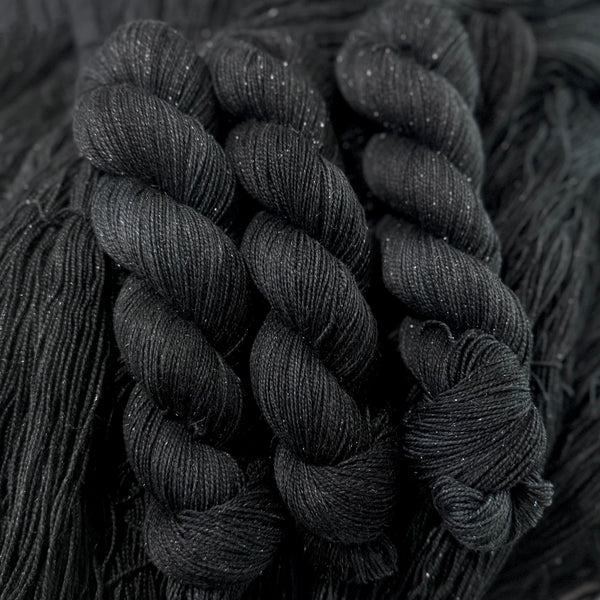 ⚫ obsidian sparkle - 2ply - 75/20 sw merino/nylon with 5% silver sparkles! 440yds/100g